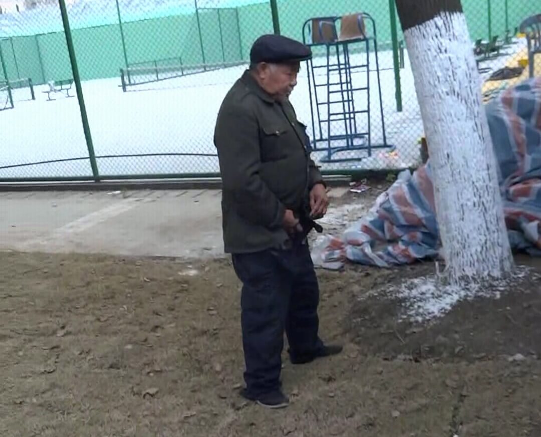 拍老伯球场边撒尿